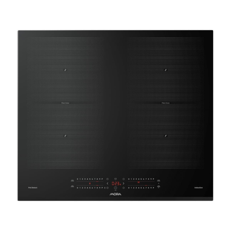 Varná deska indukční MORA o šířce 59,5 cm a v barvě černá. Počet plotýnek - 4 a napájecí napětí (V): 220-240.