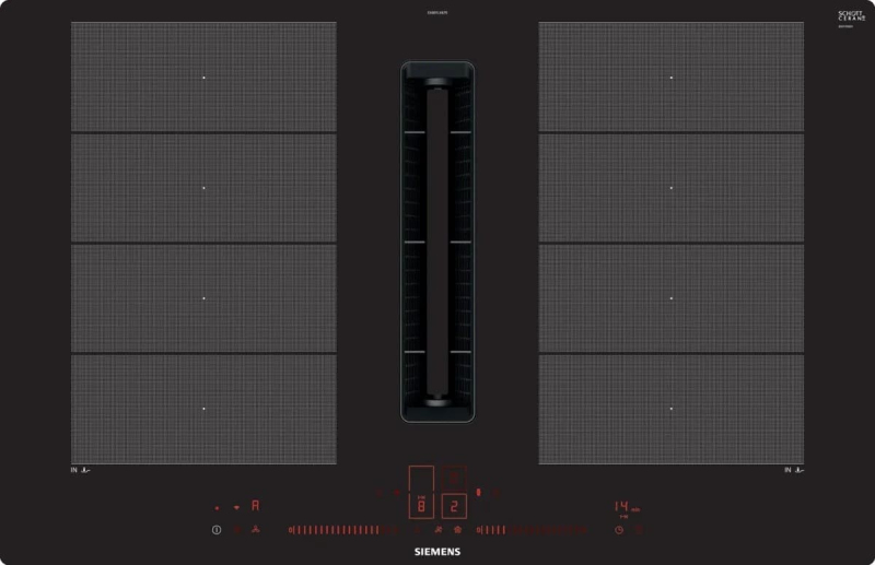 Indukční varná deska Siemens s odsáváním 80 cm zápustný design, instalace do roviny pracovní desky EX801LX67E