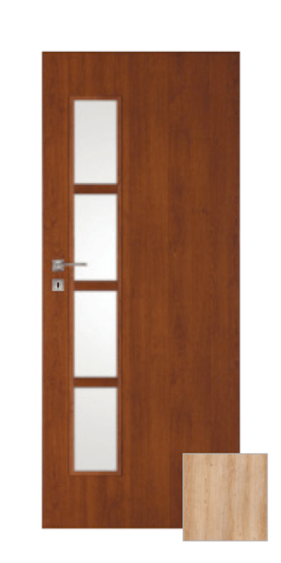 Moderní interiérové dveře, které budou ozdobou každého interiéru. Desková konstrukce s dřevěným rámem, voštinovou výplní, bílé matné sklo tl. 4mm, odolná 3D fólií v žádaném a velmi pěkném dekoru. Dveře lze osadit jak do stávající ocelové zárubně v české normě nebo do obložkové zárubně. Dveře 60 mají WC zámek (rozteč 72 mm) a pasuje k nim klika v provedení s WC knoflíkem.