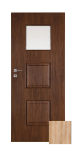 Moderní interiérové dveře, které budou ozdobou každého interiéru. Desková konstrukce s dřevěným rámem, voštinovou výplní, bílé matné sklo tl. 4 mm, odolná 3D fólií v žádaném a velmi pěkném dekoru. Dveře lze osadit jak do stávající ocelové zárubně v české normě nebo do obložkové zárubně. Dveře mají dozický zámek na klíč (WK) (rozteč 72 mm).