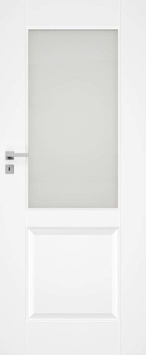 Moderní celolakované interiérové dveře se skleněnou výplní, které budou ozdobou každého interiéru. Rámová konstrukce s MDF rámem, ekologický UV vytvrzený lak. Dveře lze osadit jak do stávající ocelové zárubně v české normě nebo do obložkové zárubně. Dveře 60 mají WC zámek (rozteč 72 mm) a pasuje k nim klika v provedení s WC knoflíkem.