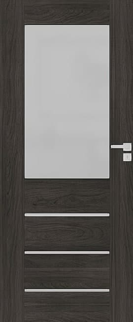 Moderní interiérové dveře, které budou ozdobou každého interiéru. Rámová konstrukce z MDF s kvalitní fólií v žádaném a velmi pěkném. Výplň je poskládána z panelů z MDF ve stejném dekoru a bílého matného skla tl. 4 mm. Zasklení bez zasklívacích rámečků působí velice estetickým dojmem. Dveře lze osadit jak do stávající ocelové zárubně v české normě nebo do obložkové zárubně. Dveře 60 mají WC zámek (rozteč 72 mm) a pasuje k nim klika v provedení s WC knoflíkem.