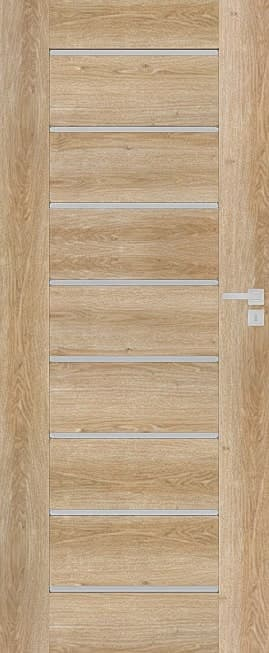 Moderní interiérové dveře, které budou ozdobou každého interiéru. Rámová konstrukce z MDF s kvalitní fólií v žádaném a velmi pěkném. Výplň je poskládána s panelů z MDF ve stejném dekoru a bílého matného skla tl. 4 mm. Zasklení bez zasklívacích rámečků působí velice estetickým dojmem. Dveře lze osadit jak do stávající ocelové zárubně v české normě nebo do obložkové zárubně. Dveře 60 mají WC zámek (rozteč 72 mm) a pasuje k nim klika v provedení s WC knoflíkem.