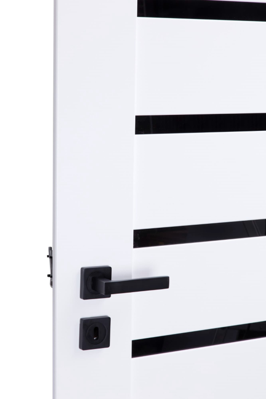 Moderní interiérové dveře Zaria, které budou ozdobou každého interiéru, hlavně díky svým krásným kontrastům bílého povrchu a černého skla. Rámová konstrukce z MDF s kvalitním CPL povrchem, který má lepší odolnost proti mechanickému poškození, poškrabání a lehkou údržbu. Výplň je poskládána z panelů z MDF a černého matného skla tl. 4 mm. Zasklení bez zasklívacích rámečků působí velice estetickým dojmem. Dveře lze osadit jak do stávající ocelové zárubně v české normě nebo do obložkové zárubně. Dveře mají zámek na WC kličku.