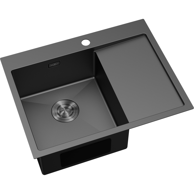 Jednodřezový ocelový dřez Mexen Exar s odkapávačem, levý, 620 x 480 mm, černý - 6431621005L-70