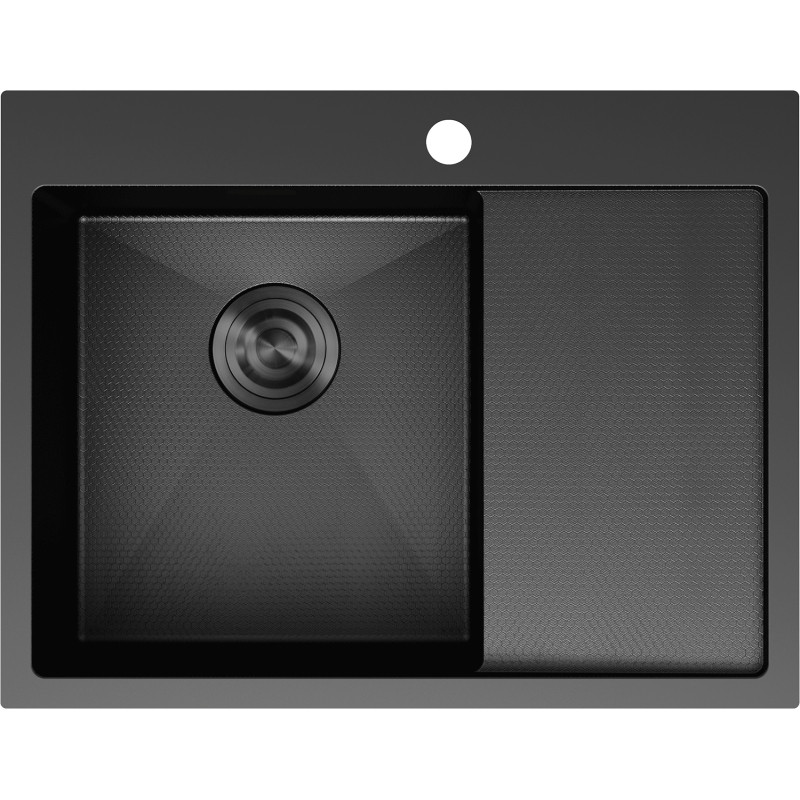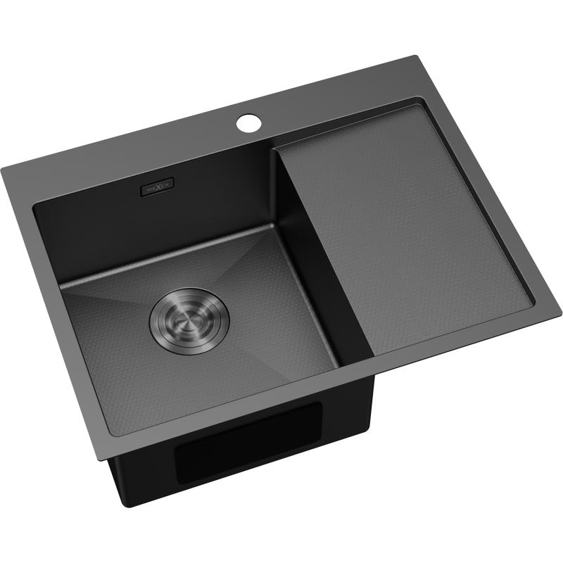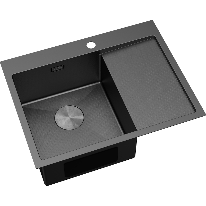 Jednodřezový ocelový dřez Mexen Exar s odkapávačem, levý, 620 x 480 mm, černý HC - 6431621005L-70HC