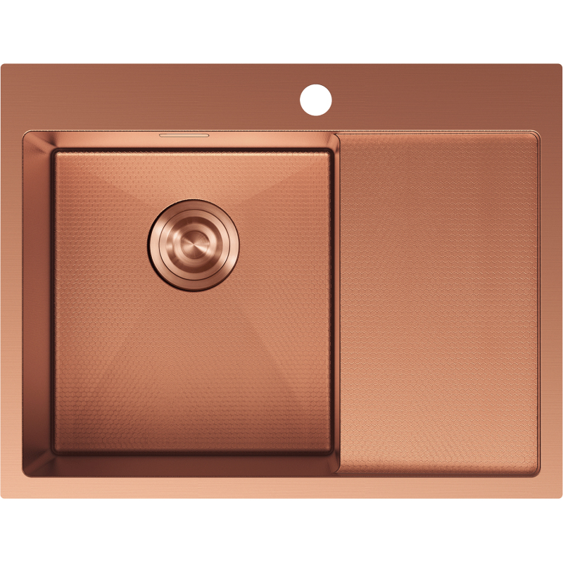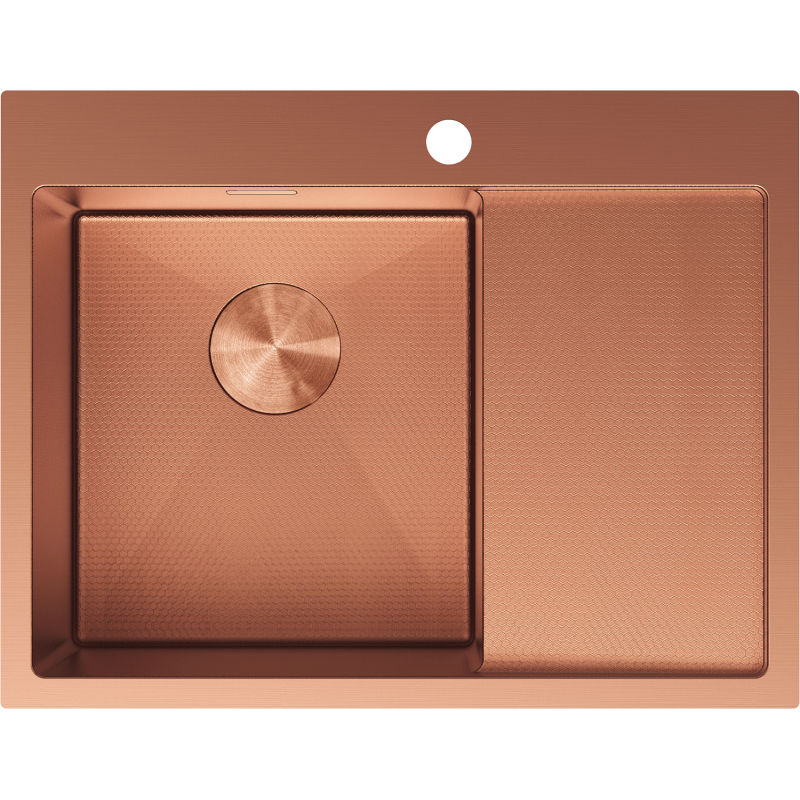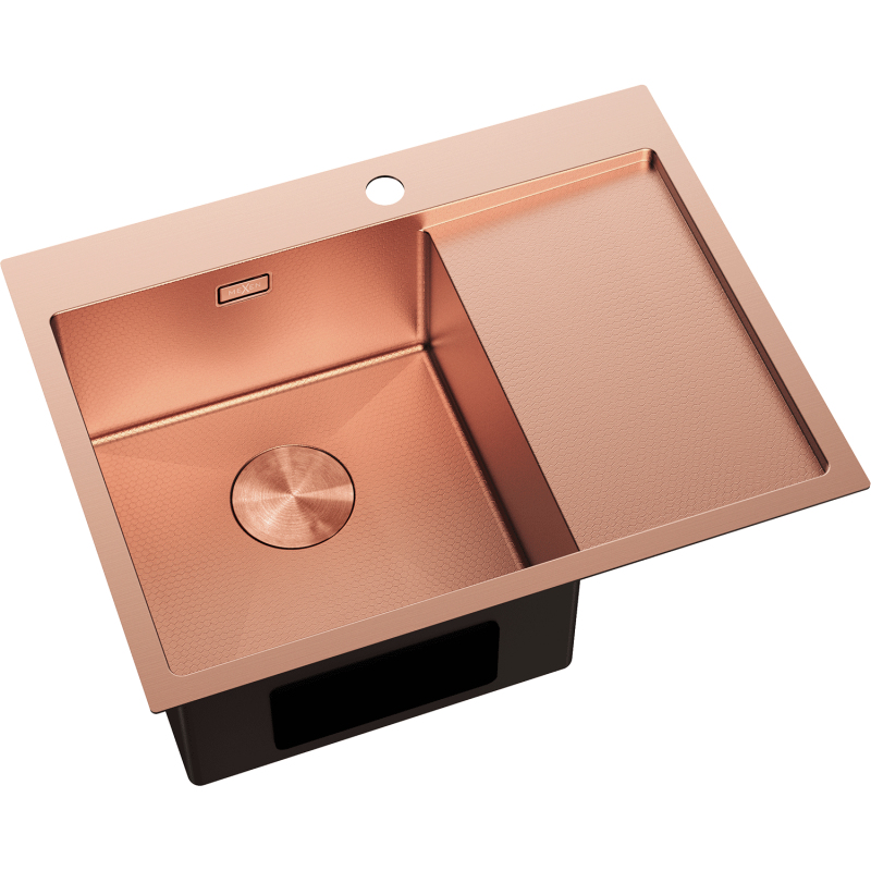 Jednodřezový ocelový dřez Mexen Exar s odkapávačem, levý, 620 x 480 mm, měděná HC - 6431621005L-65HC