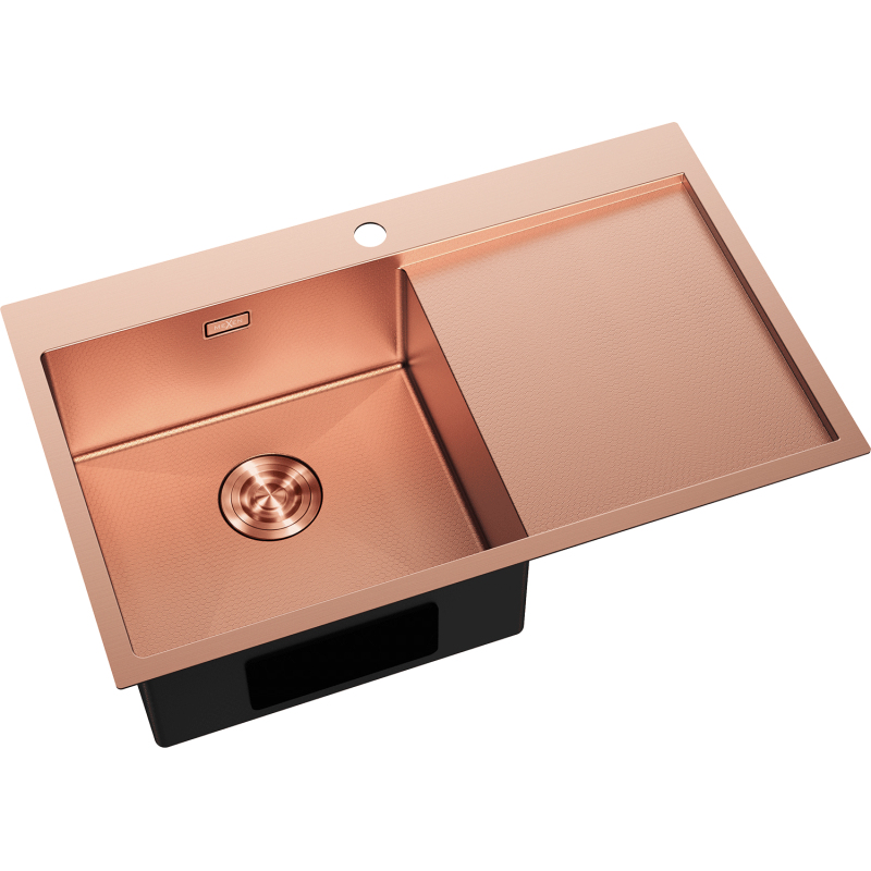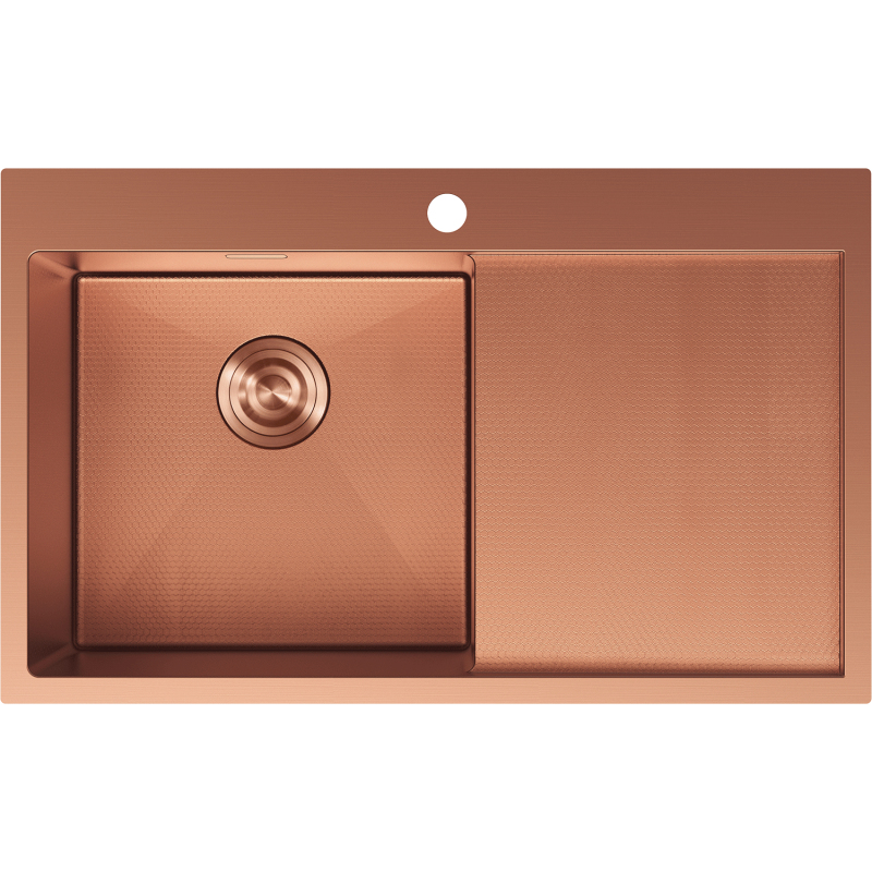Jednodřezový ocelový dřez Mexen Exar s odkapávačem, levý, 780 x 480 mm, měděná HC - 6433781010L-65HC