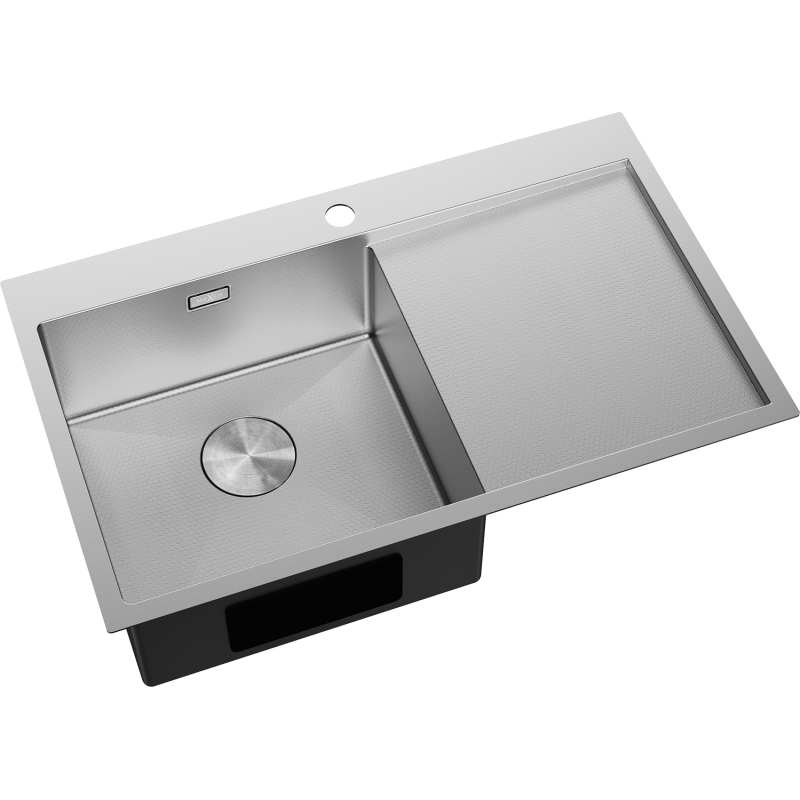 Jednodřezový ocelový dřez Mexen Exar s odkapávačem, levý, 780 x 480 mm, nerezová ocel HC - 6433781010L-01HC