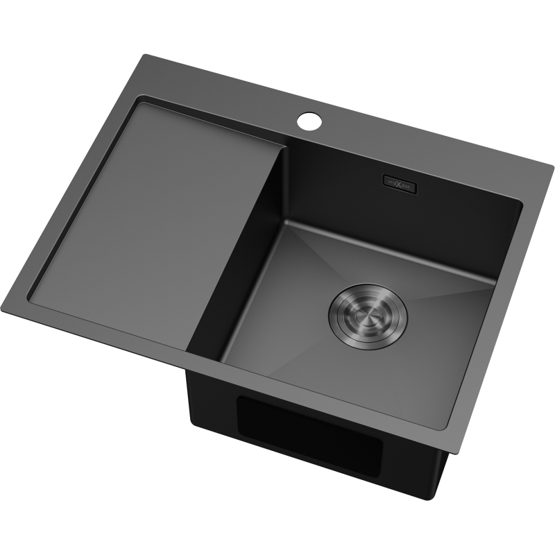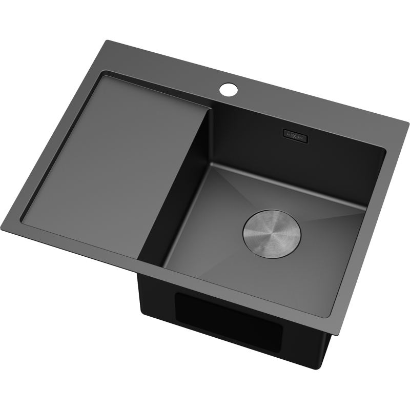 Jednodřezový ocelový dřez Mexen Exar s odkapávačem, pravý, 620 x 480 mm, černý - 6432621005P-70