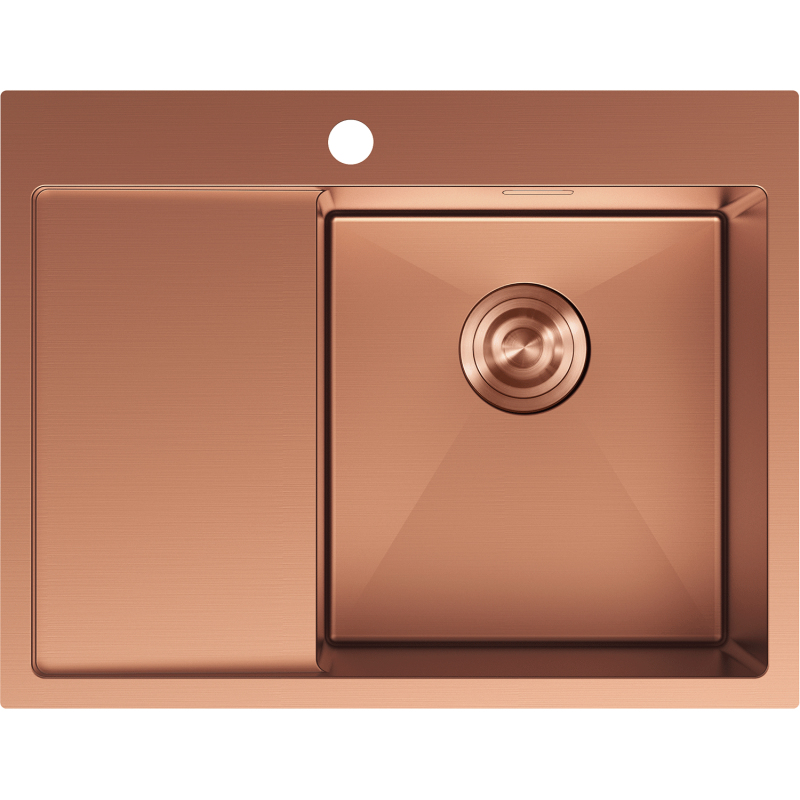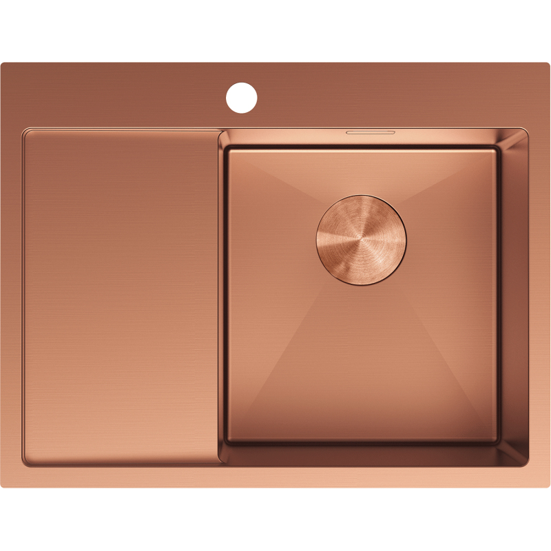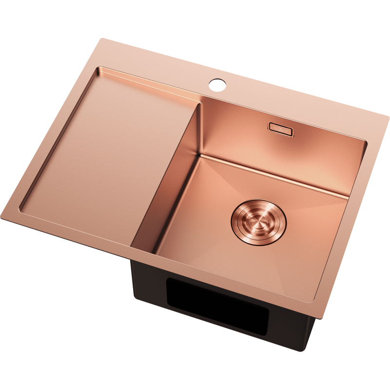 Jednodřezový ocelový dřez Mexen Exar s odkapávačem, pravý, 620 x 480 mm, měď - 6432621005P-65