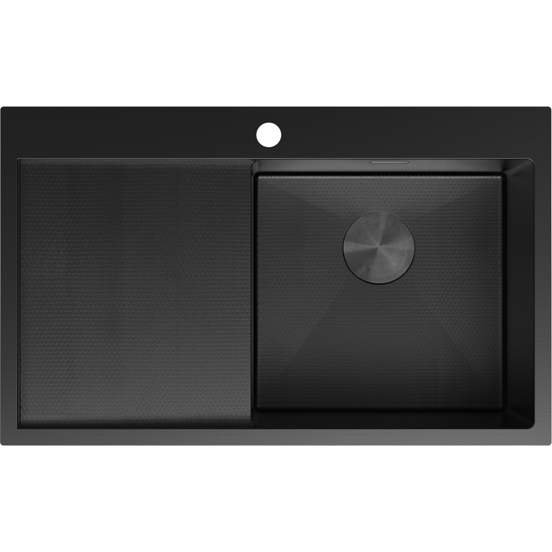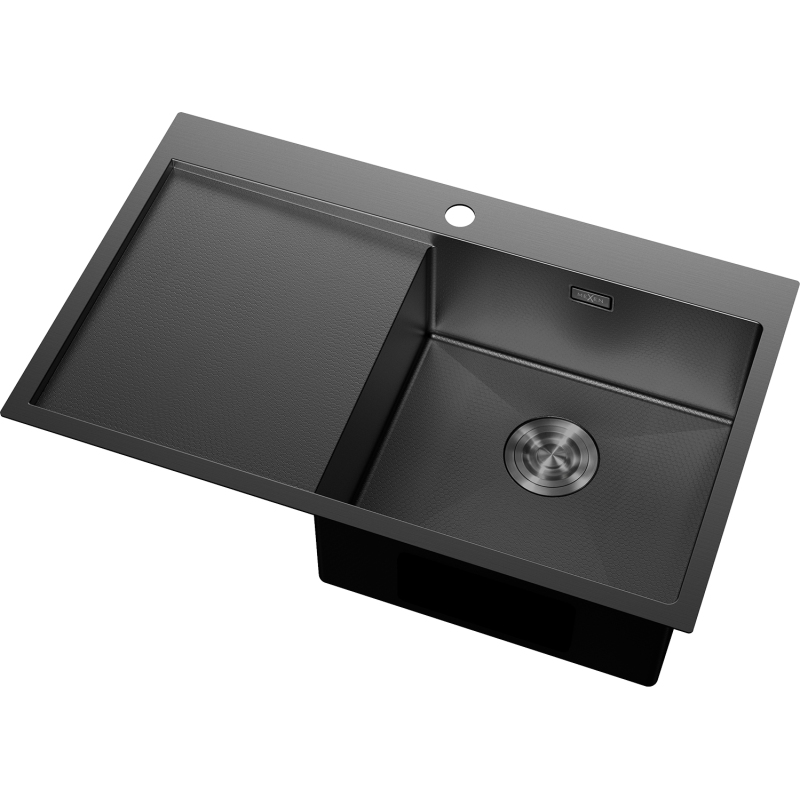 Jednodřezový ocelový dřez Mexen Exar s odkapávačem, pravý, 780 x 480 mm, černý HC - 6434781010P-70HC