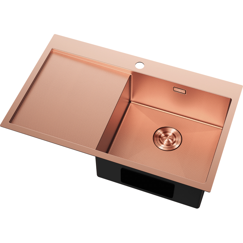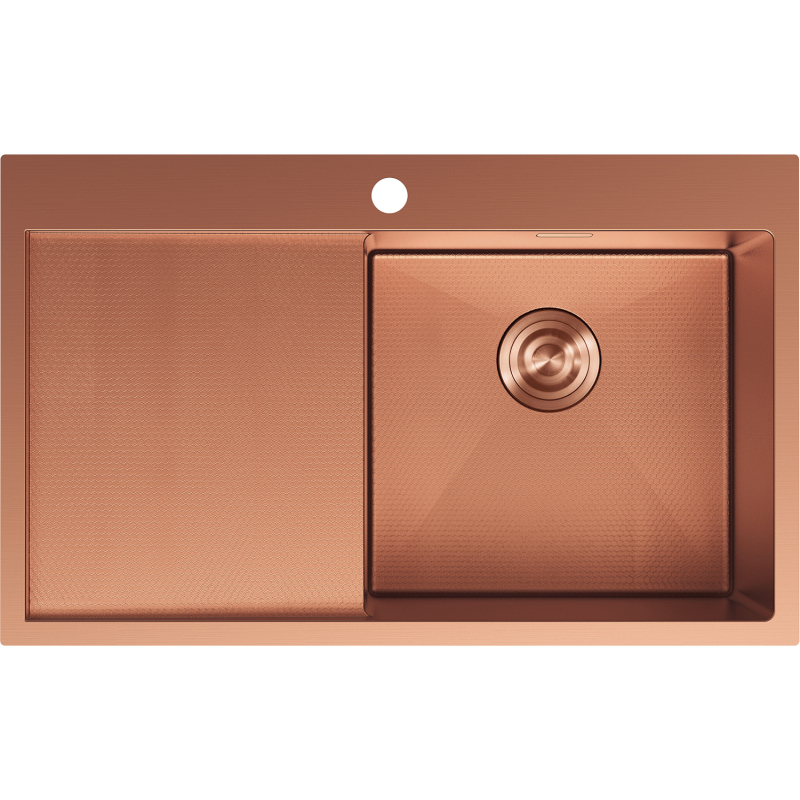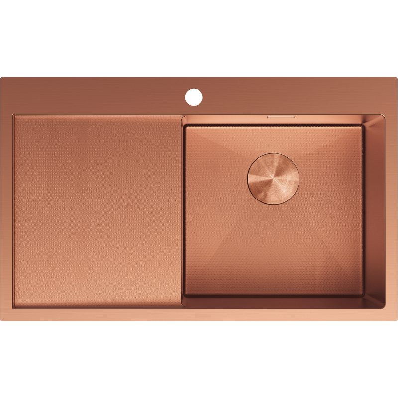 Jednodřezový ocelový dřez Mexen Exar s odkapávačem, pravý, 780 x 480 mm, měděná HC - 6434781010P-65HC