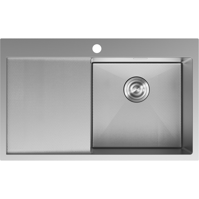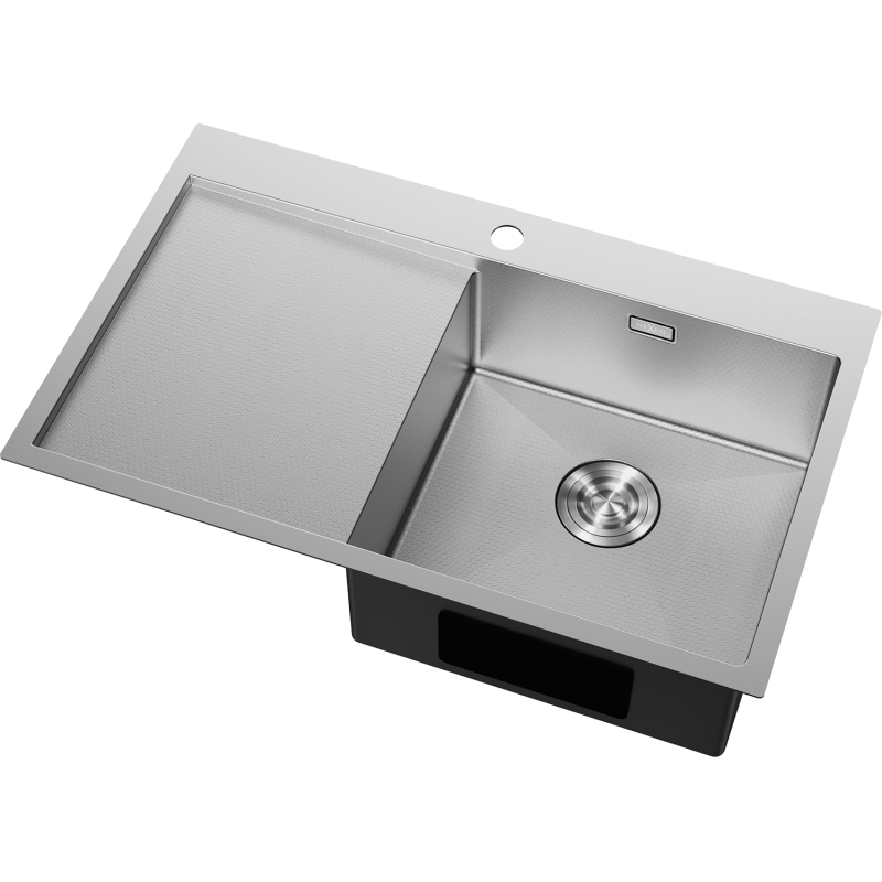 Jednodřezový ocelový dřez Mexen Exar s odkapávačem, pravý, 780 x 480 mm, nerezová ocel HC - 6434781010P-01HC