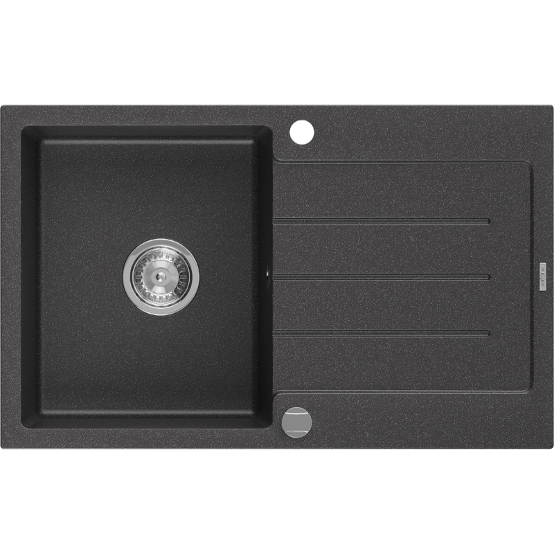 Jednodřezový žulový dřez Mexen Bruno s odkapávačem 795 x 495 mm, černá tečka, chromovaný sifon - 6513791010-76