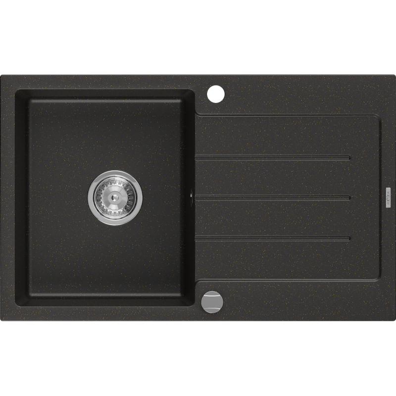 Jednodřezový žulový dřez Mexen Bruno s odkapávačem 795 x 495 mm, černá/zlatá metalíza, chromovaný sifon - 6513791010-75