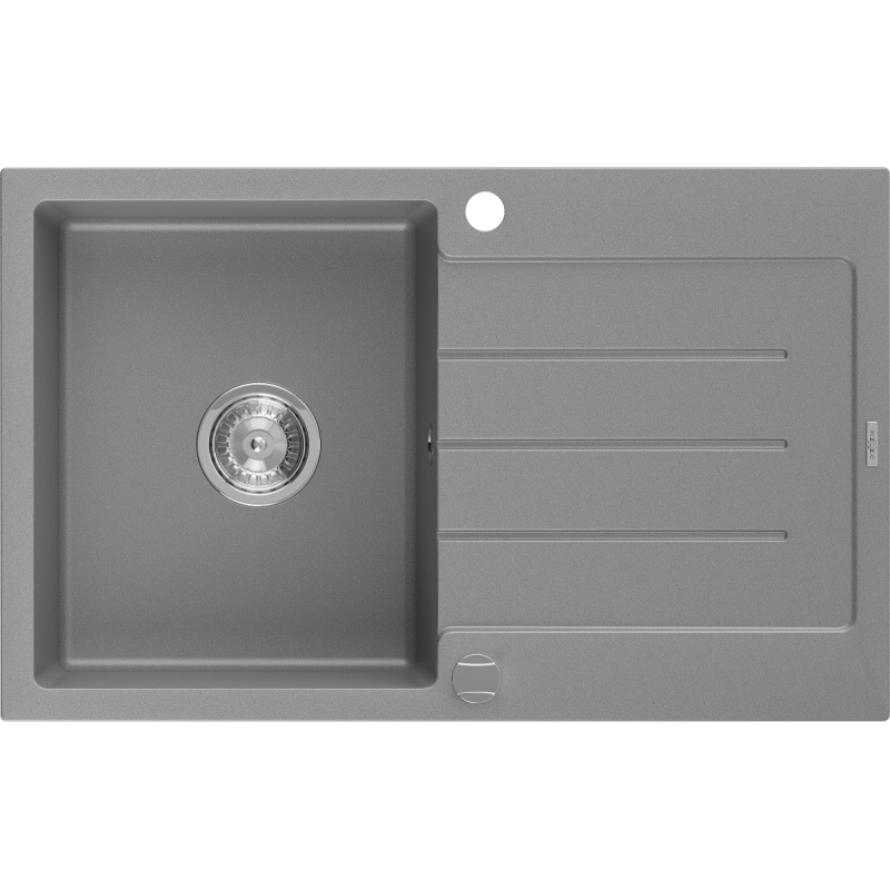 Jednodřezový žulový dřez Mexen Bruno s odkapávačem 795 x 495 mm, šedý, chromovaný sifon - 6513791010-71