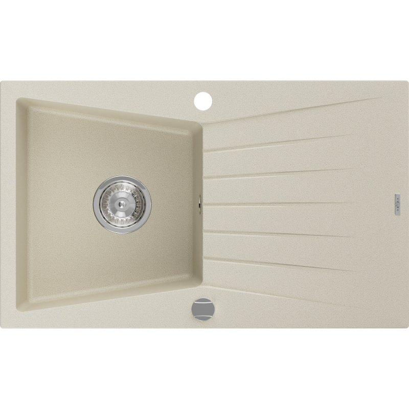 Jednodřezový žulový dřez Mexen Cesar s odkapávačem 775 x 470 mm, béžový, chromovaný sifon - 6514771010-69