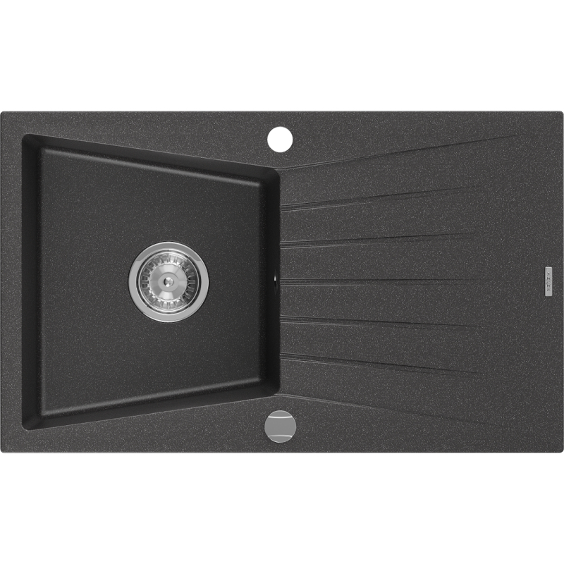Jednodřezový žulový dřez Mexen Cesar s odkapávačem 775 x 470 mm, černá tečka, chromovaný sifon - 6514771010-76