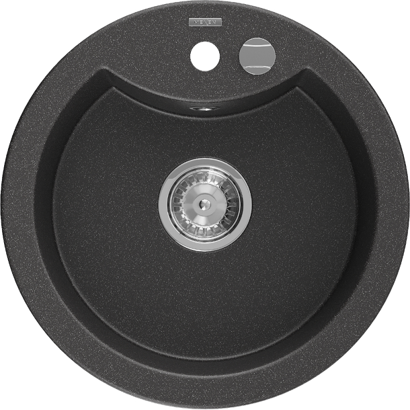 Jednodřezový žulový dřez Mexen Diego 488 x 480 mm, černá tečka, chromovaný sifon - 6512481000-76