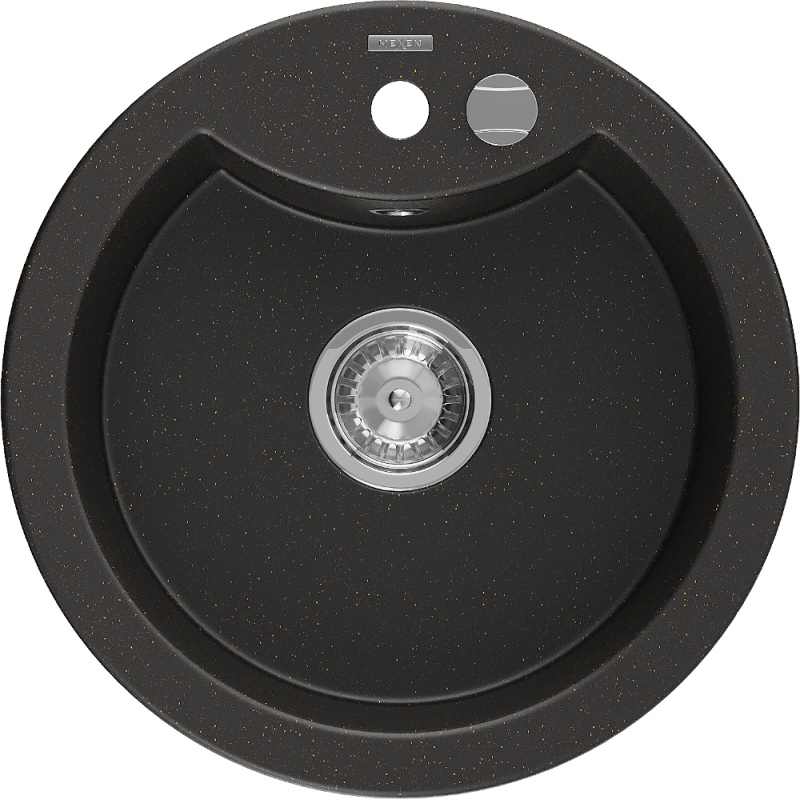 Jednodřezový žulový dřez Mexen Diego 488 x 480 mm, černá/zlatá metalíza, chromovaný sifon - 6512481000-75