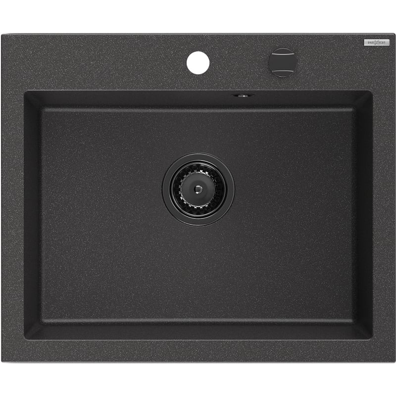 Jednodřezový žulový dřez Mexen Elix 600 x 500 mm, tečkovaná černá, černý sifon - 6525601005-76-B