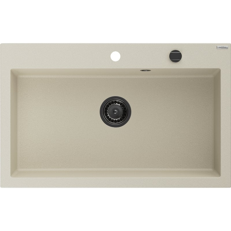 Jednodřezový žulový dřez Mexen Elix 800 x 500 mm, béžový, černý sifon - 6527801005-69-B