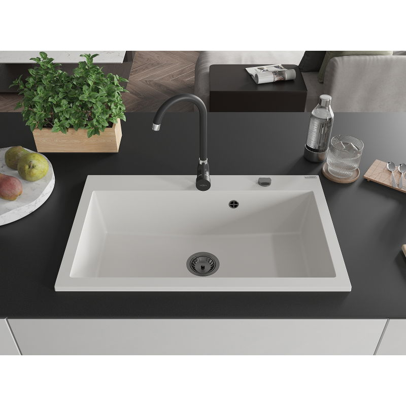 Jednodřezový žulový dřez Mexen Elix 800 x 500 mm, bílý, černý sifon - 6527801005-20-B