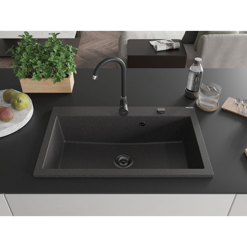Jednodřezový žulový dřez Mexen Elix 800 x 500 mm, tečkovaná černá, černý sifon - 6527801005-76-B