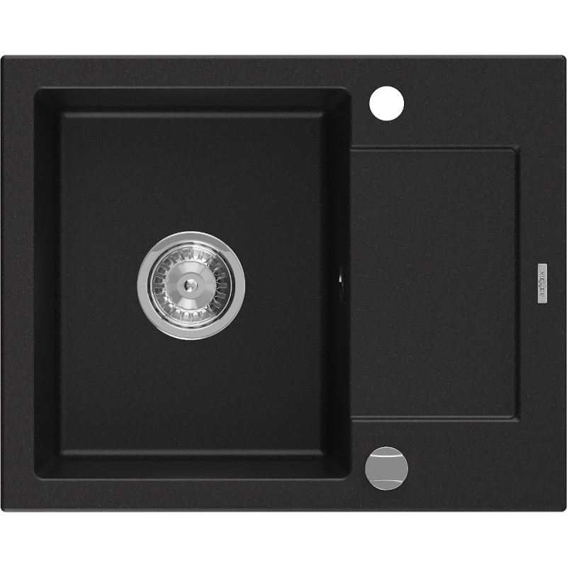 Jednodřezový žulový dřez Mexen Enzo s odkapávačem 576 x 465 mm, černý, chromovaný sifon - 6506571005-77