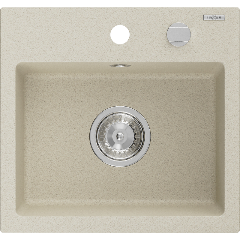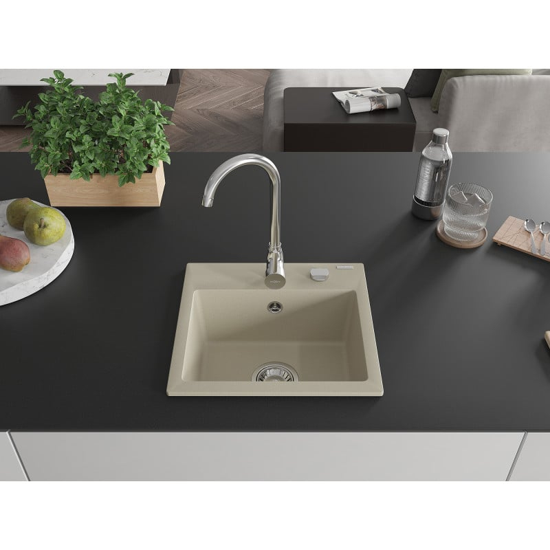 Jednodřezový žulový dřez Mexen Milo 435 x 410 mm, béžový, chromovaný sifon - 6505441000-69