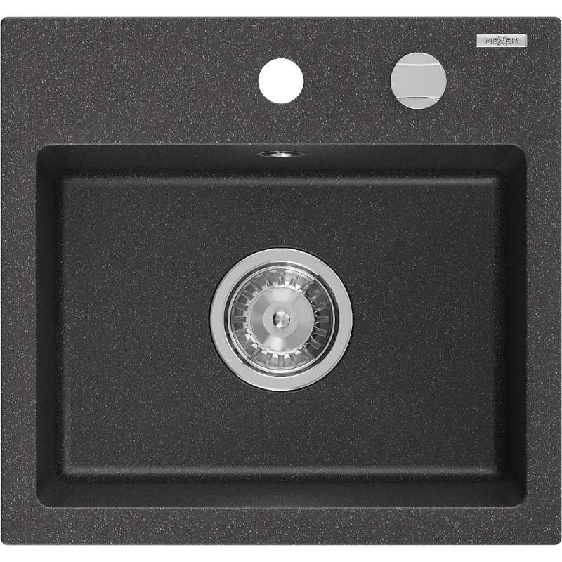 Jednodřezový žulový dřez Mexen Milo 435 x 410 mm, černá tečkovaná, chromovaný sifon - 6505441000-76