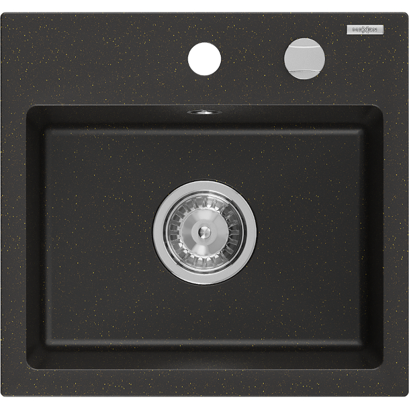 Jednodřezový žulový dřez Mexen Milo 435 x 410 mm, černá/zlatá metalíza, chromovaný sifon - 6505441000-75
