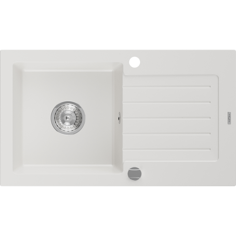 Jednodřezový žulový dřez Mexen Pablo s odkapávačem 752 x 436 mm, bílý, chromovaný sifon - 6510751010-20