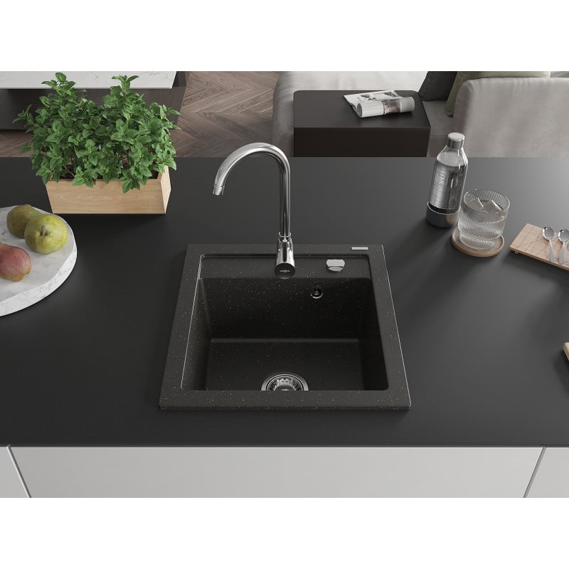 Jednodřezový žulový dřez Mexen Vito 520 x 490 mm, černá/zlatá metalíza, chromovaný sifon - 6503521000-75