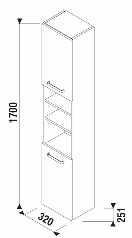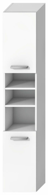 Závěsná koupelnová skříňka vysoká v bílé barvě o rozměru 32x25,1x170 cm. S pomalým zavíráním. Dvířka mají levé i pravé otevírání.