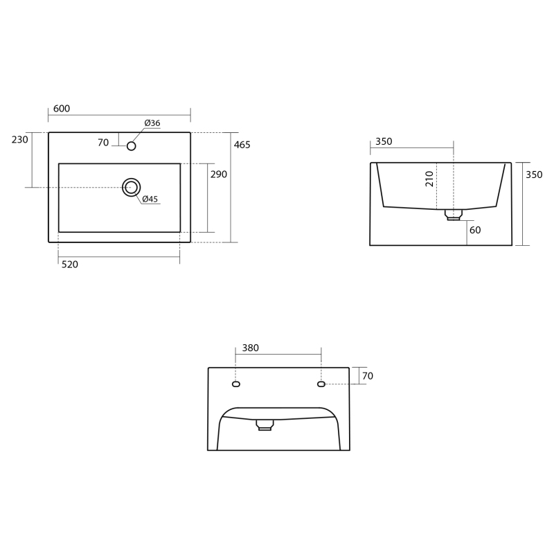 KANAAL keramické umyvadlo 60x46,5cm, bílá