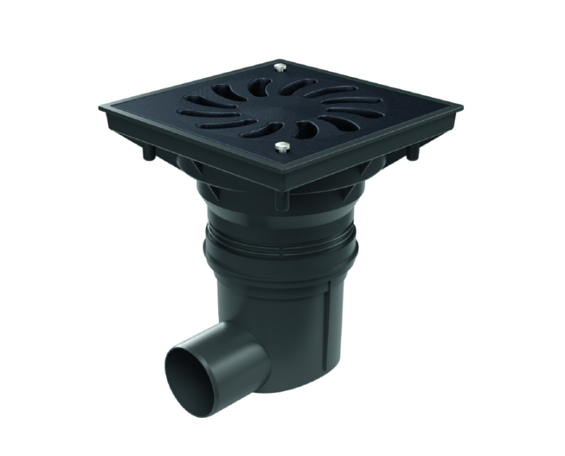 Kanalizační vpusť boční D75-250 suchá klapka, límec, plastová mřížka 436 S