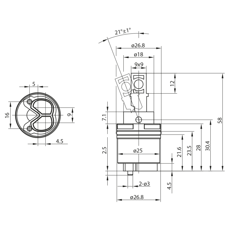 Směšovací kartuše 25mm HUA, vysoká 1102-95 1102-95 33702
