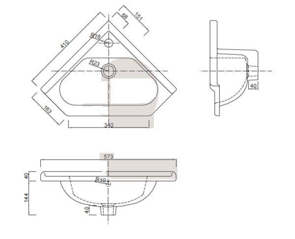 PRO rohová skříňka + umyvadlo LA1600 PRORSDV