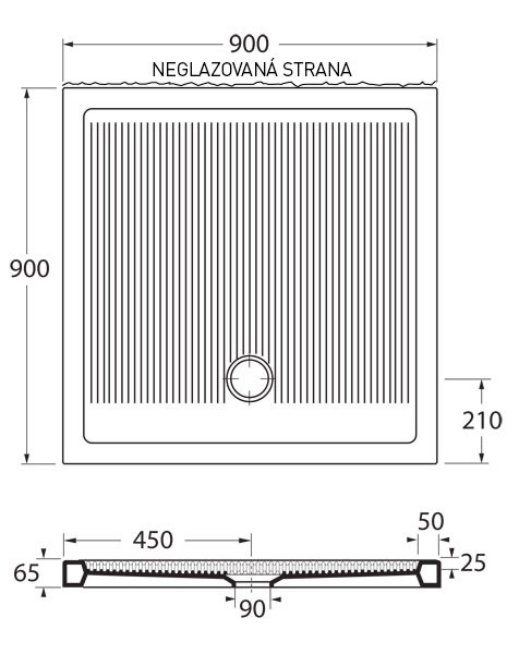 - 90 × 90 × 6,5 cm, hmotnost 37 kg