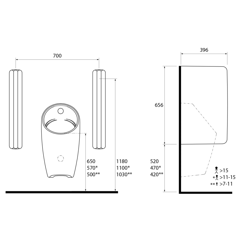 Keramická dělící stěna mezi urinály 39x66 cm, bílá