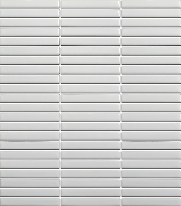 Mrazuvzdorné. Keramická mozaika v bílé barvě o rozměru 28,2x30,8 cm s matným povrchem. Základní prvek ve tvaru obdélníku o rozměru 1,2x9,2 cm