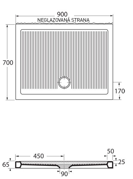 Přednosti obdélníkové keramické sprchové vaničky FERDY II: