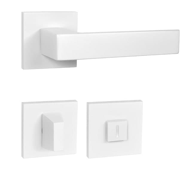 Rozetová klika na interiérové dveře s hranatou rozetou je vyrobena z materiálů vysoké kvality - zamak a je povrchově upravena. Rozeta má rozměry 53 mm x 53 mm a tloušťku 6 mm.