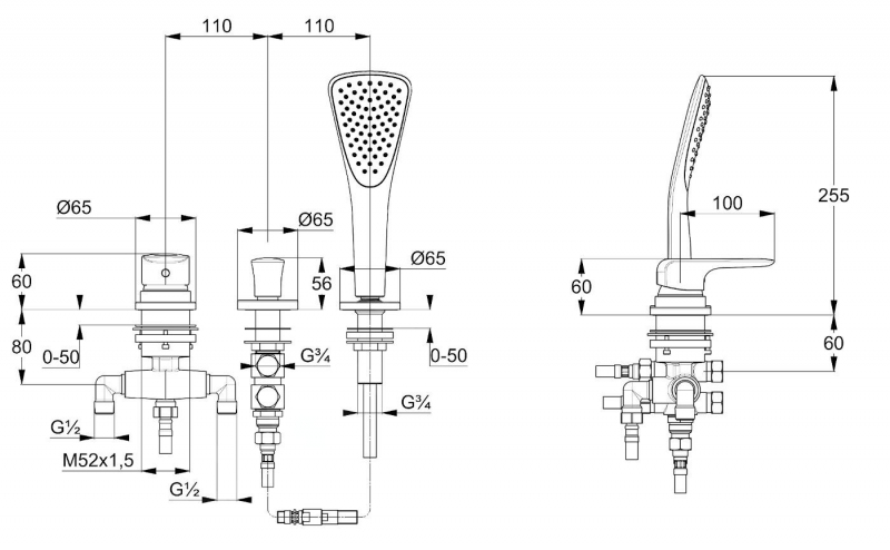 - automatický přepínač: sprcha/vana