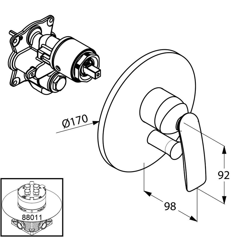 White podomítková vanová a sprchová jednopáková baterie 526509175 podomítková vanová a sprchová jednopáková baterie vrchní díl s ovládací jednotkou uzavřená páka automatický přepínač: sprcha/vana keramická kartuše s možností omezení maximální teploty vody třída průtoku DC PA-IX 18967/IDC