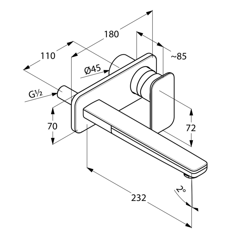 KLUDI E2 Umyvadlová baterie bez podomítkového tělesa, chrom 492450575