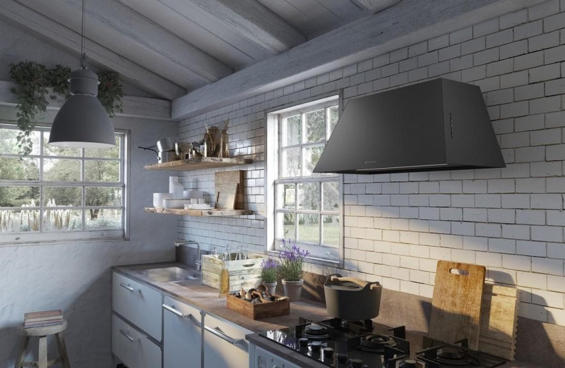 Komínová digestoř Faber CHLOE CI A70 (šířka 70 cm) v litinovém/rustikálním designu. Úsporná třída A, 3 rychlosti + intenzivní odsávání až 730 m³/h, obvodové štěrbinové sání, LED pásek 3000 K. Umí odtah i recirkulaci, má signalizaci filtrů a doběh.