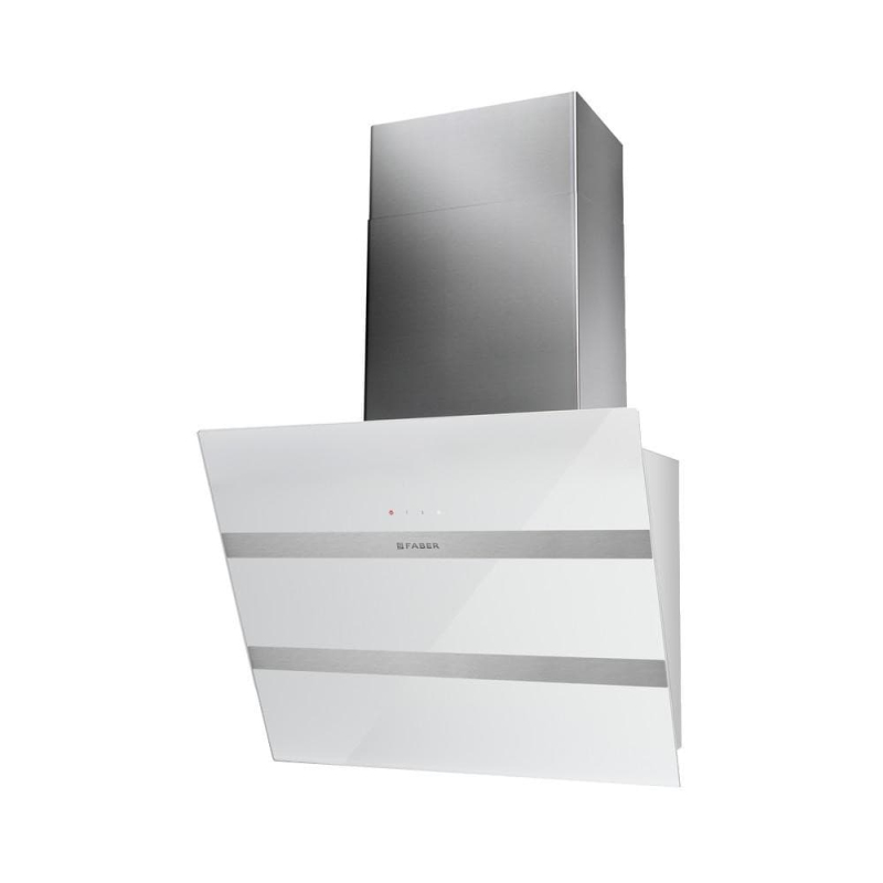 Komínová digestoř Faber STEELMAX EV8 WH/X A55 (55 cm), nerez/bílé sklo. Štěrbinové sání s výklopným panelem, dotykové ovládání, 3 rychlosti + INT a doběh. Výkon až 730 m³/h, hlučnost 53–71 dB, 2× LED 4000 K. Připraveno pro rekuperaci i externí motor.